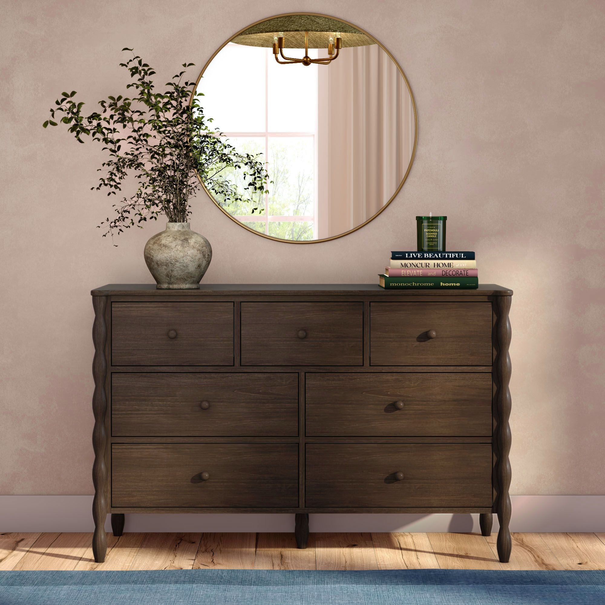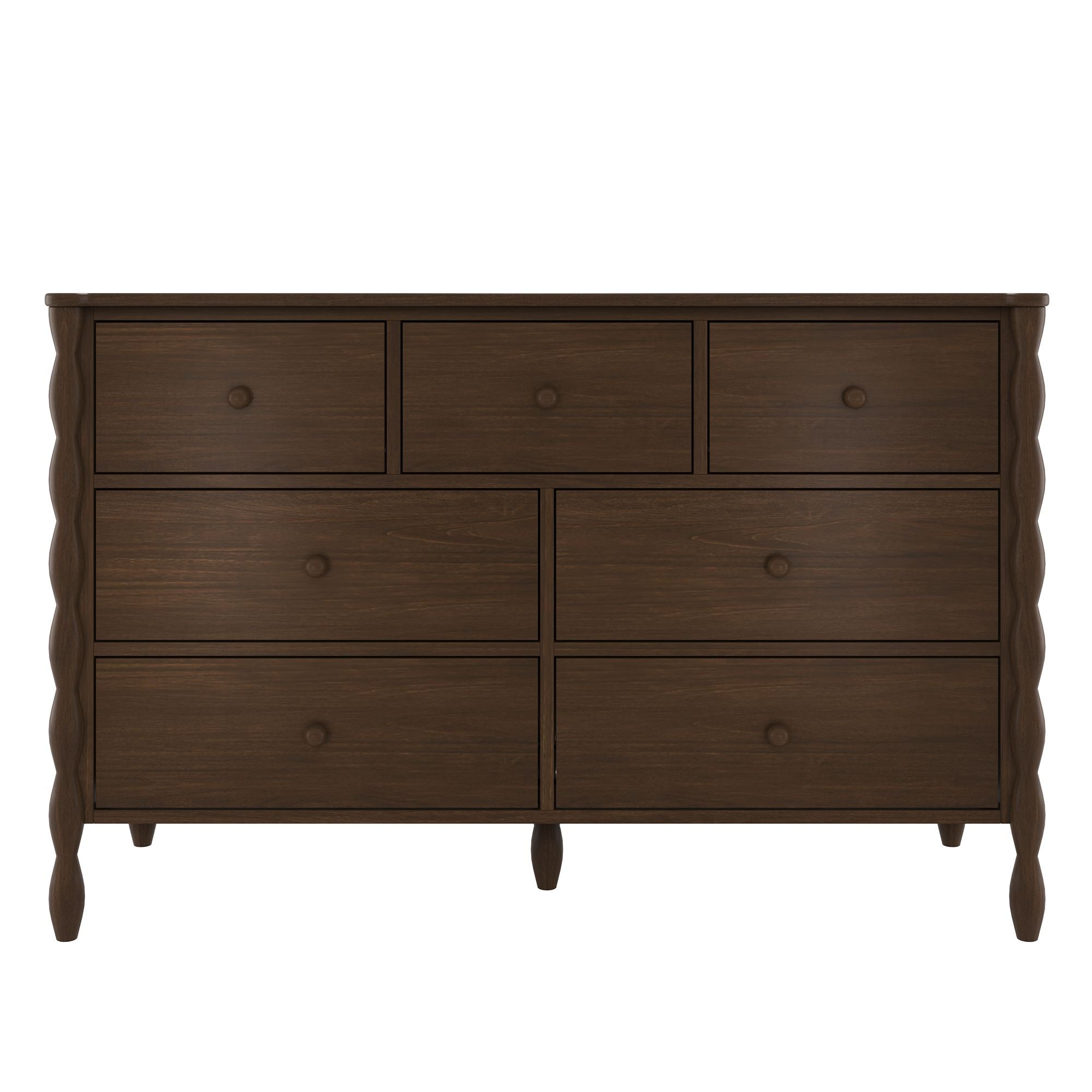 A nod to the past that’s made for the present, the Lind 7-Drawer Dresser does it all with character to spare. Inspired by the iconic Jenny Lind look, this dresser shows off beautifully turned legs and sculpted spindle detailing that bring vintage charm into the modern day. Crafted from solid pine wood with engineered wood drawer bottoms, it’s built to handle the everyday with lasting strength and smooth-gliding drawers that make storage feel effortless. A low-VOC finish highlights the natural wood grain while keeping your space fresh and clean. With seven roomy drawers and plenty of personality, this wooden dresser proves that practical pieces can still have plenty of flair. Pair with the Lind Bed and Nightstands for a setup that feels warm, cohesive, and nostalgic in the best way.