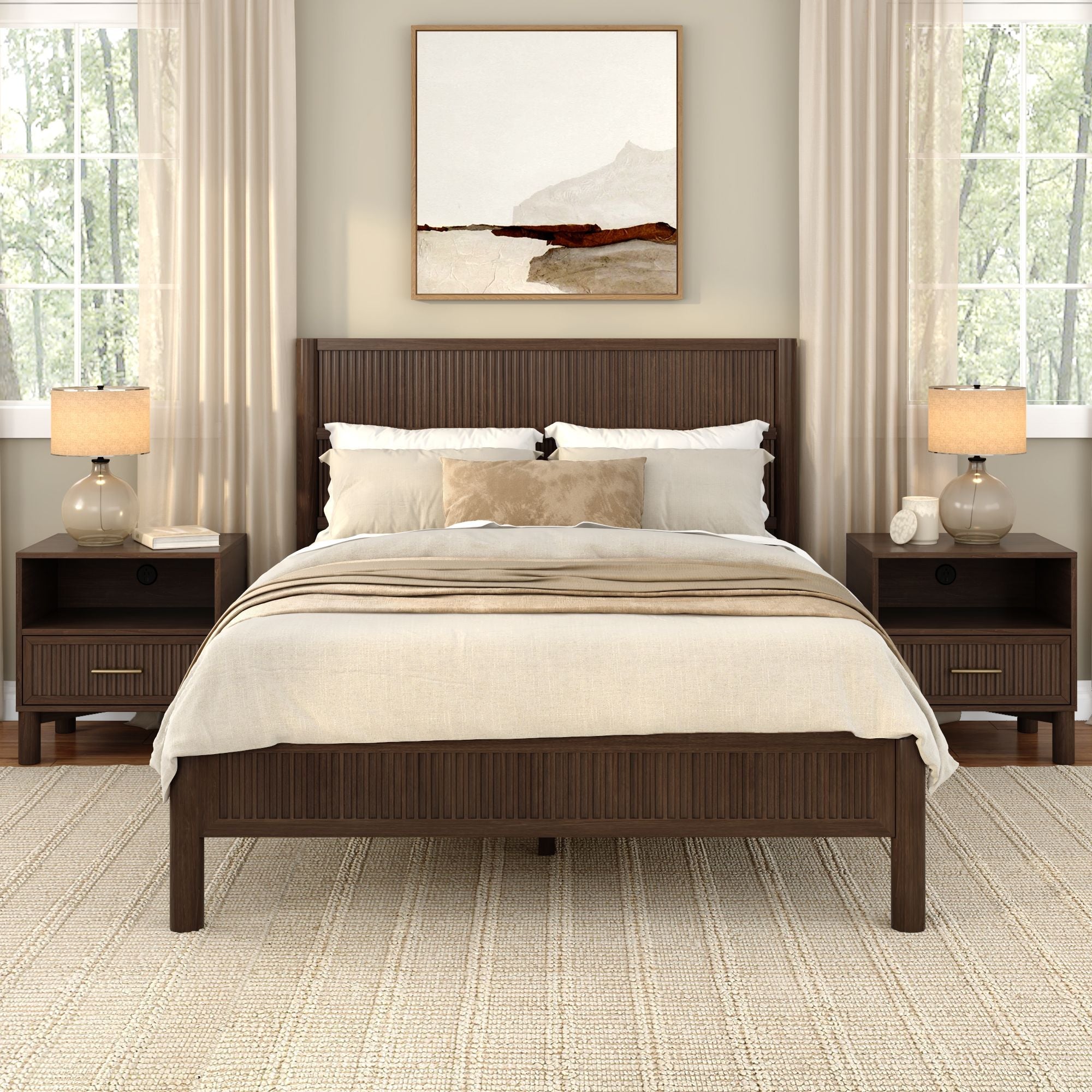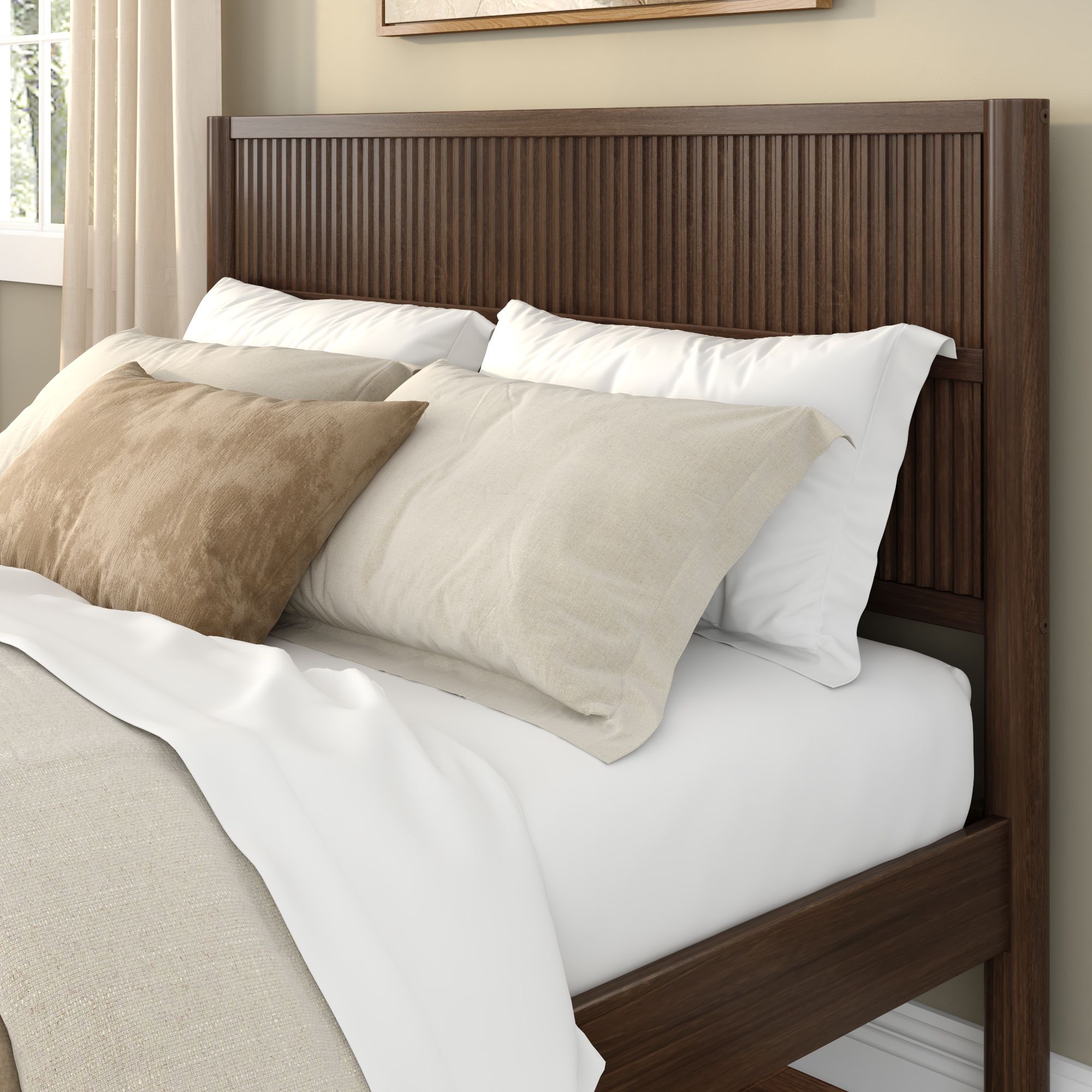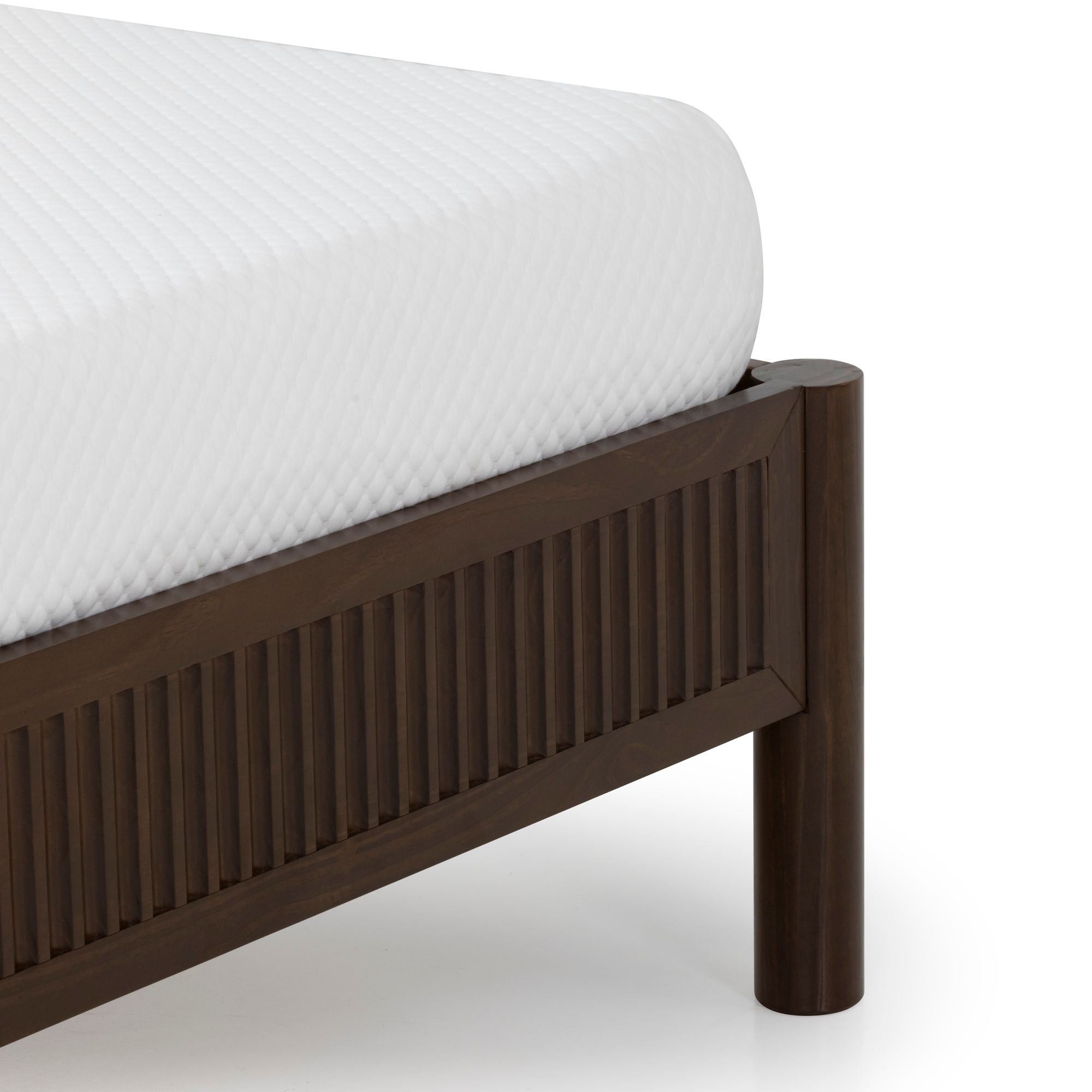 The Sera Queen Bed gives contemporary design a fresh new groove — literally. Crafted from knot-free solid pine wood and a metal support bar, this fluted queen bed is sturdy, durable, and built to last through every toss and turn. This contemporary bed frame brings all the texture with a fluted headboard and footboard, catching the light with every groove for a modern, subtly dramatic look. Rounded column legs ground the look with a nod to contemporary design, while the rich natural wood tone makes any bedroom feel instantly warmer. From every groove to every grain, this modern wood bed proves texture really does make the room.